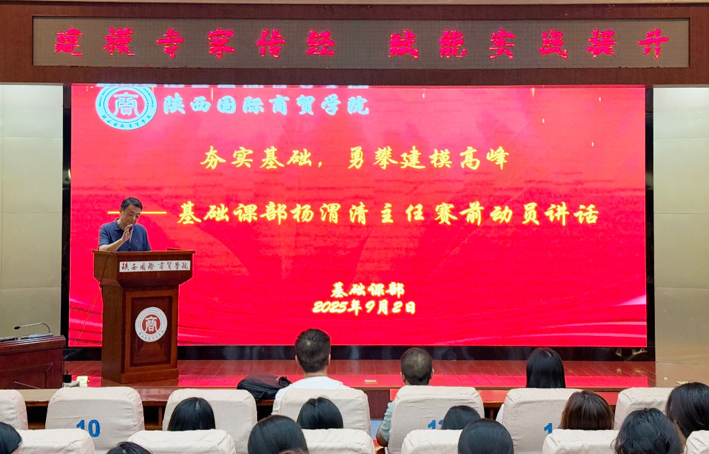 会上,基础课部主任杨渭清教授作动员讲话。杨主任代表学校,向在百忙之中莅临指导、为我们传经送宝的两位资深教授表示最热烈的欢迎和最衷心的感谢。他指出,数学建模不仅是一场竞赛,更是一次综合能力的锻炼和提升,能够帮助同学们将理论知识转化为解决实际问题的工具。他鼓励同学们树立信心、勇于挑战,在备战过程中注重思维训练和团队协作,充分发挥自身潜力。
