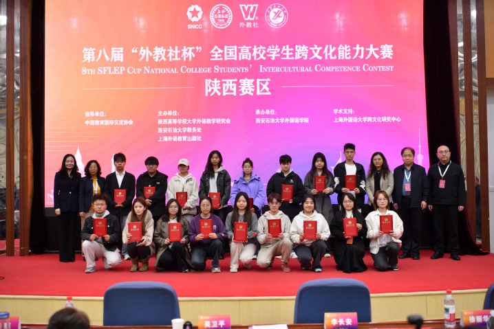 2025 年 10 月 18 日,第八届 “外教社杯” 全国高校学生跨文化能力大赛陕西赛区比赛在西安石油大学雁塔校区盛大启幕。作为全省高校跨文化教育领域的重要赛事,本次活动吸引了全省各大高校的优秀学子齐聚一堂,通过同台竞技展现新时代青年的跨文化沟通能力与全球视野。其中,我校派出的杜美龄、刘芮甫、郑思琪三位同学组成的代表队,在比赛中沉着应战、稳定发挥,凭借扎实的专业素养与出色的现场表现,成功斩获省级三等奖,充分彰显了我校学子的综合能力与良好精神风貌。